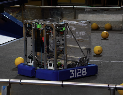 In honor of the great science fiction writer Isaac Asimov, we named our robot the Asimov. One unique feature of Asimov was its pneumatic catapult which allowed us to consistently hit our target while angled extremely high. This way, there was no interference with other basketballs in the air. Aditionally, our robot outmaneuvered other robots with a swerve drive system and picked balls off the ground in order to keep our robot scoring throughout the entire match.