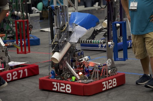 In honor of the great science fiction writer Isaac Asimov, we named our robot the Asimov. One unique feature of Asimov was its pneumatic catapult which allowed us to consistently hit our target while angled extremely high. This way, there was no interference with other basketballs in the air. Aditionally, our robot outmaneuvered other robots with a swerve drive system and picked balls off the ground in order to keep our robot scoring throughout the entire match.